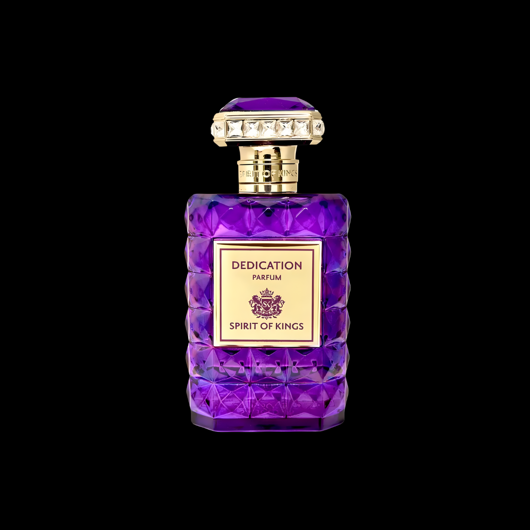 Dedication es opulencia pura. La salida vibrante se funde con un corazón floral exuberante, mientras su base rica y ahumada crea una profundidad majestuosa. De carácter regio y sensual, es una fragancia que deja huella y expresa poder desde el primer instante.